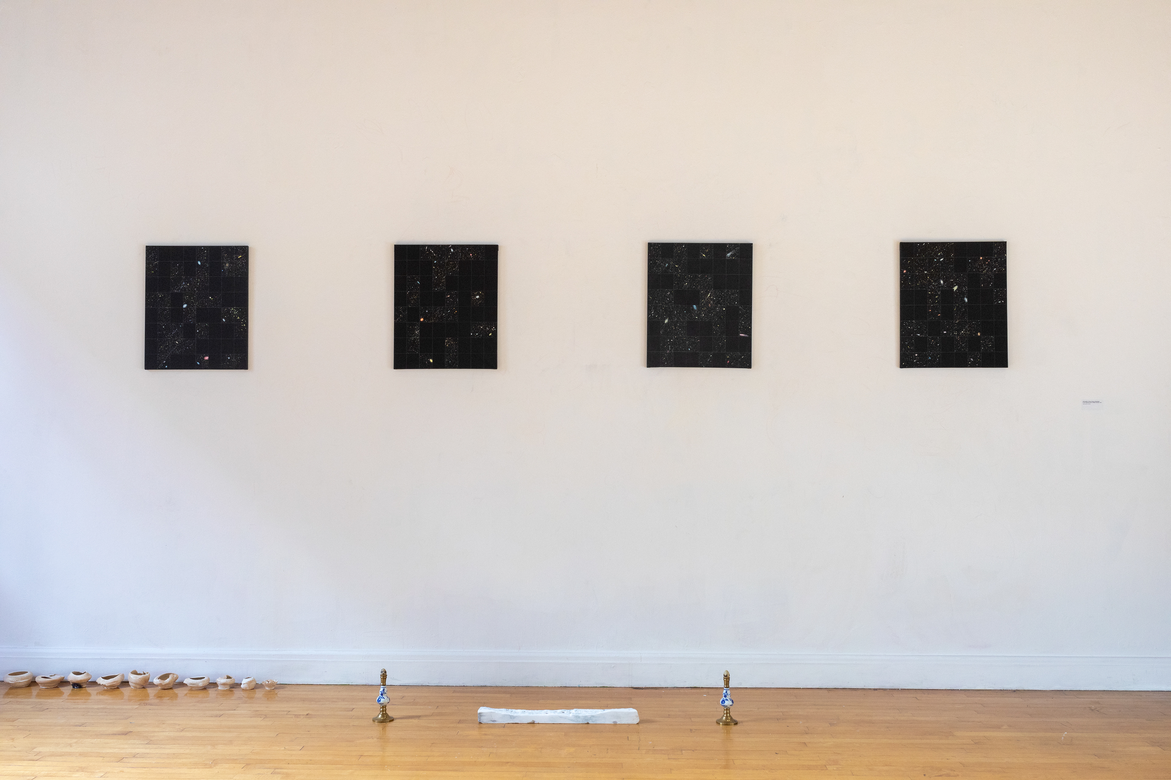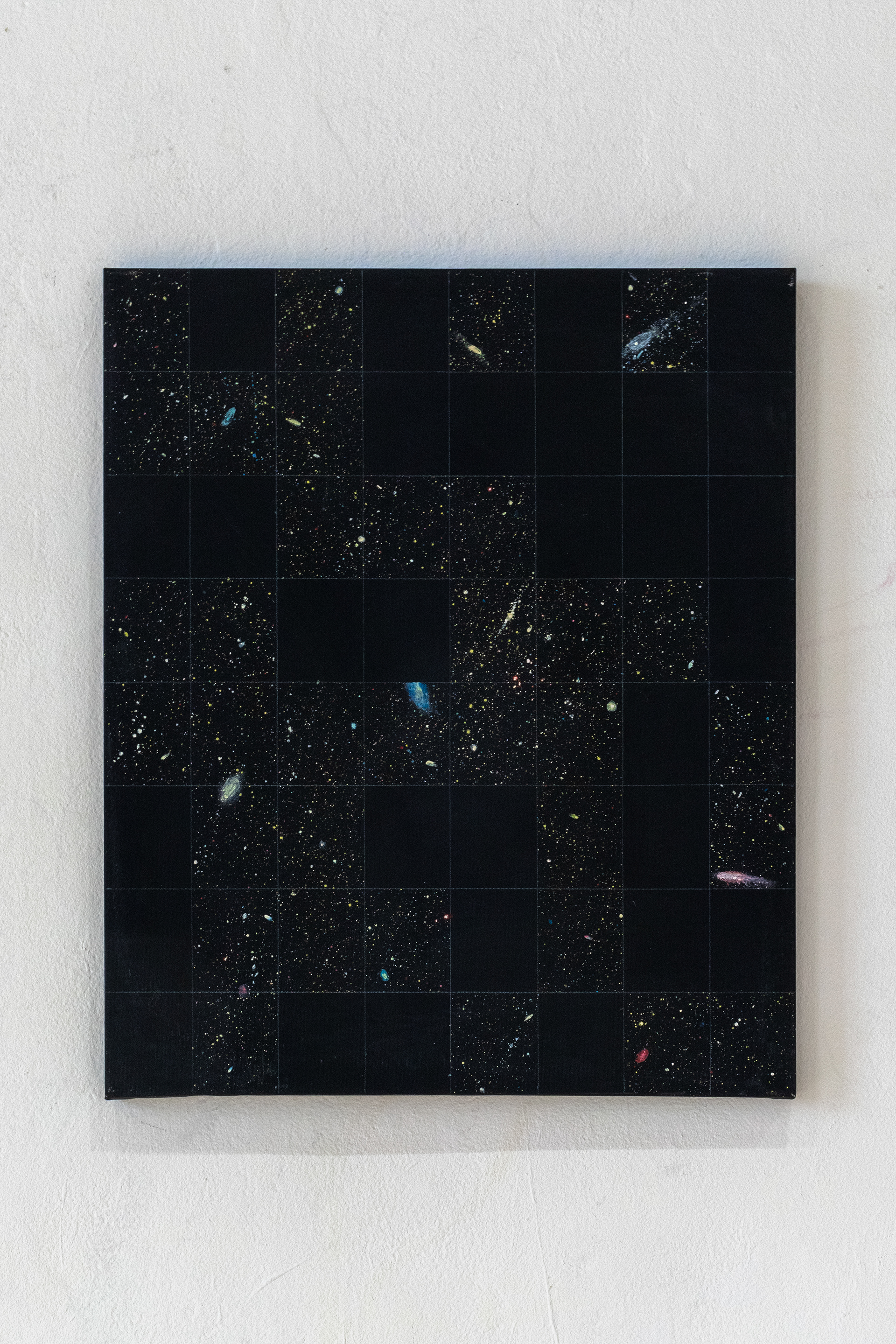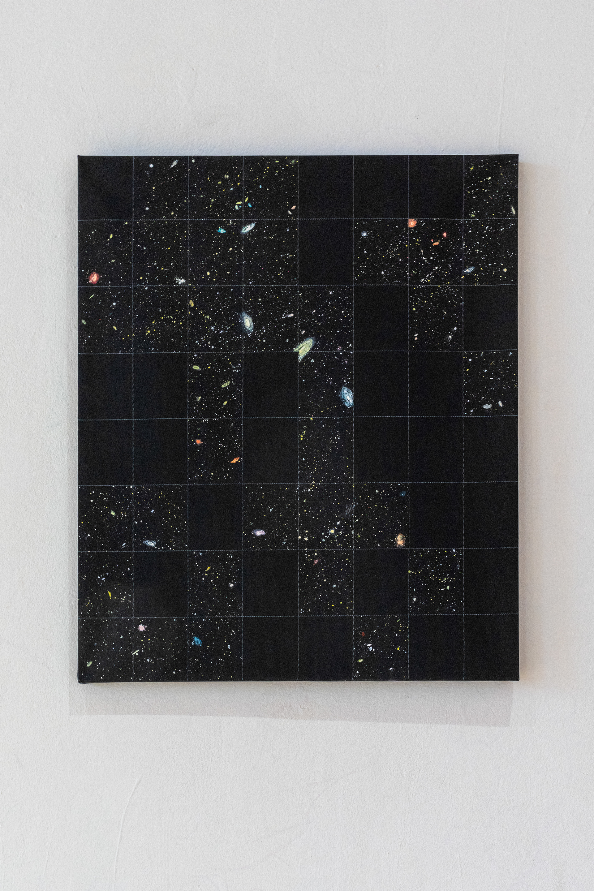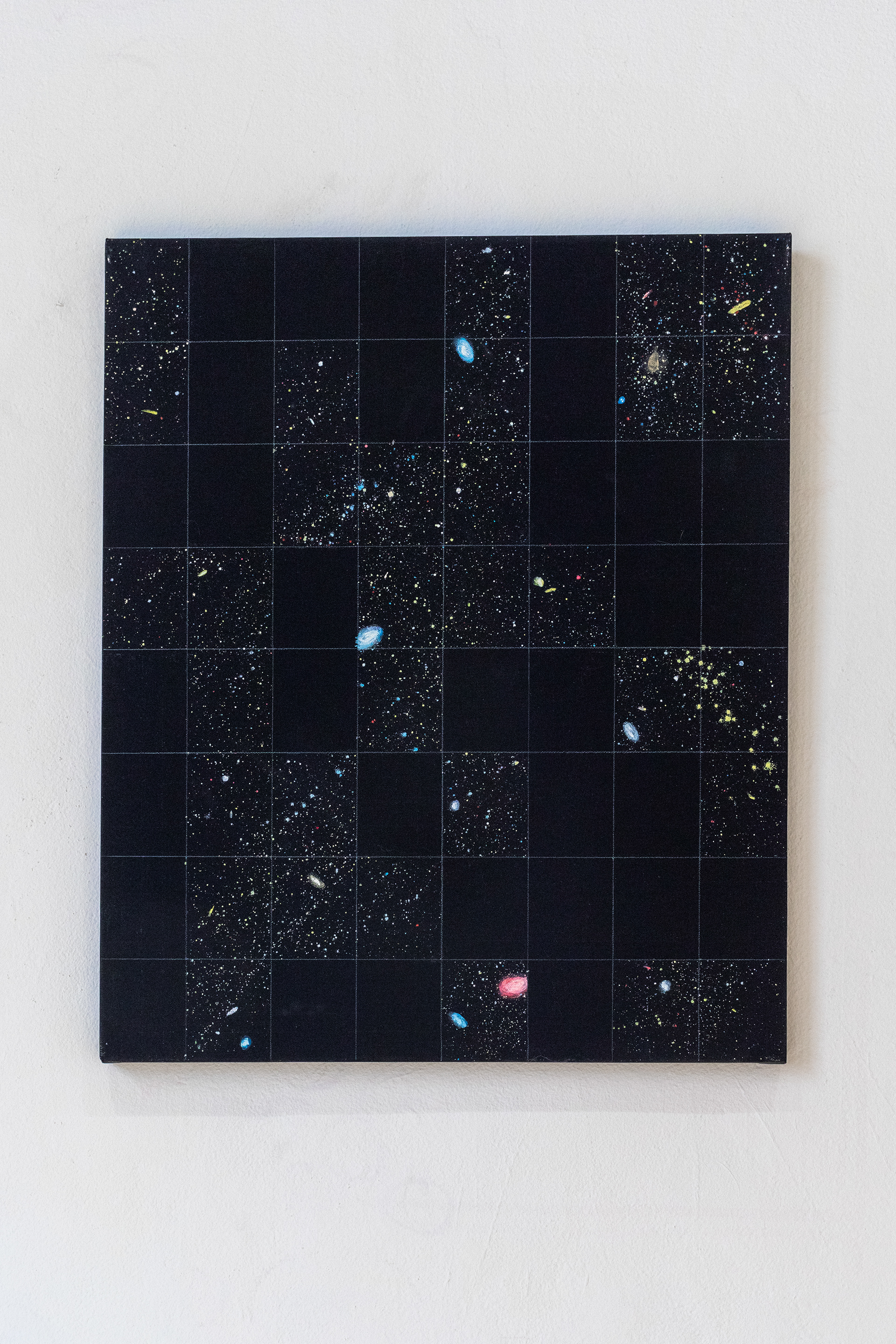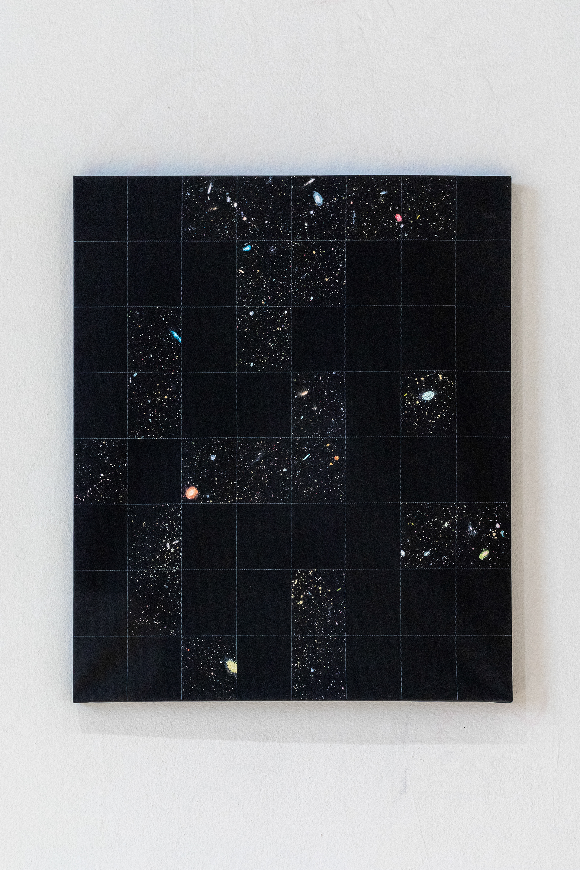 right: The Enigma of Initial Conditions, 2020, acrylic painting on canvas
